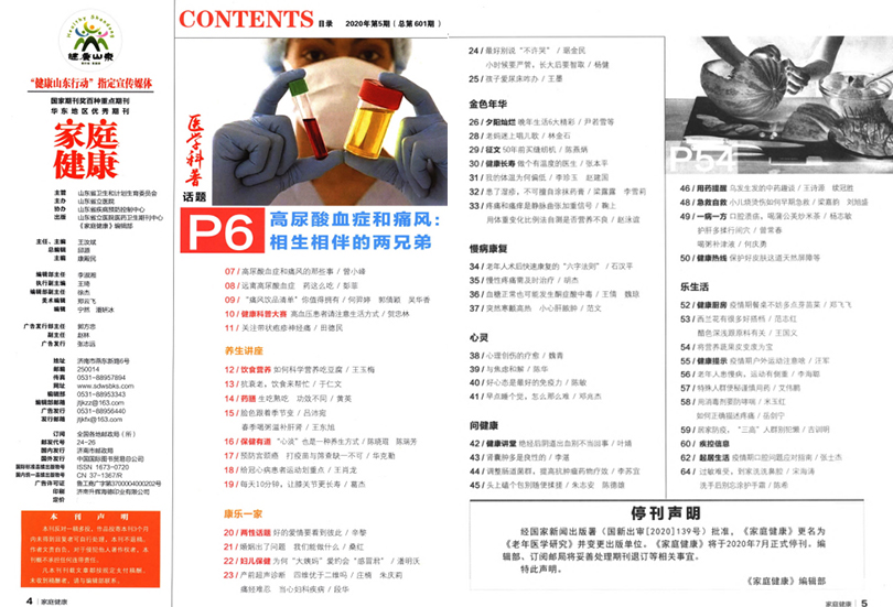 总而言之该杂志是一本专注于家庭健康领域的期刊,内容丰富、实用性强。它致力于帮助家庭成员了解健康的重要性、改善生活方式,促进家庭幸福和健康发展。希望通过阅读这本杂志,读者们能够学到更多实用的健康知识,为自己和家人的健康负责,并在健康的家庭氛围中共同成长和发展。
